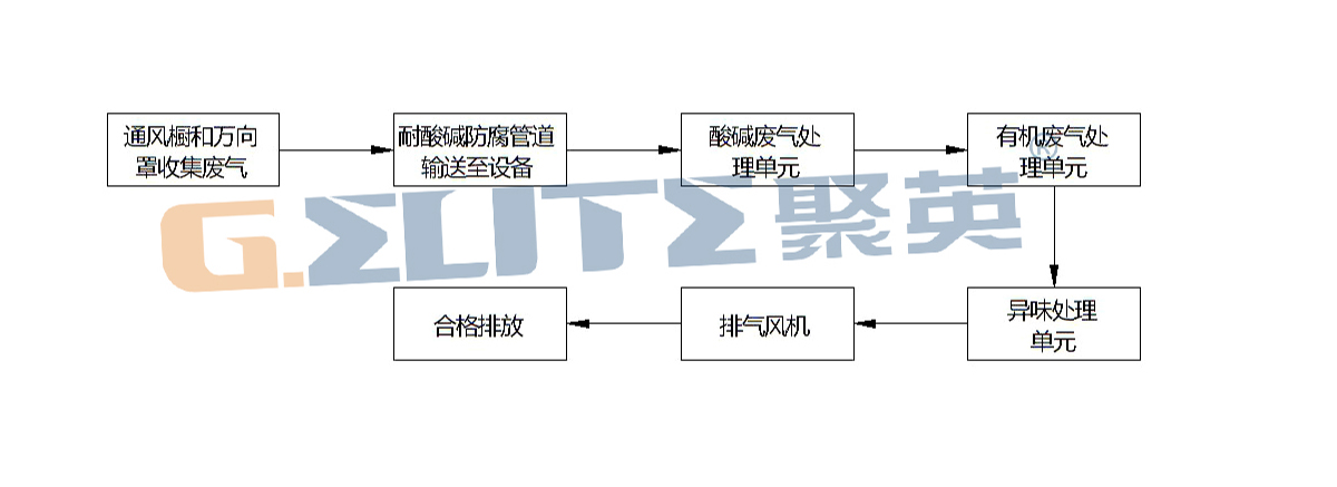 备注:以上工艺流程是废气综合处理的工艺,针对不同的废气将采用不同处理工艺。