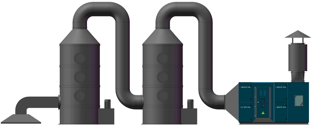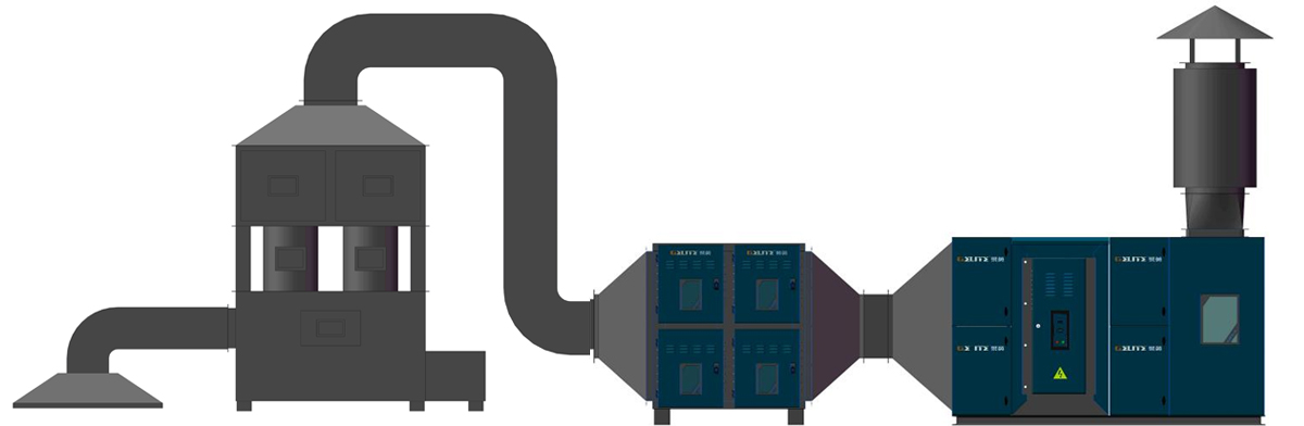 前端收集 旋流塔降温除尘 干式+静电油雾一体净化