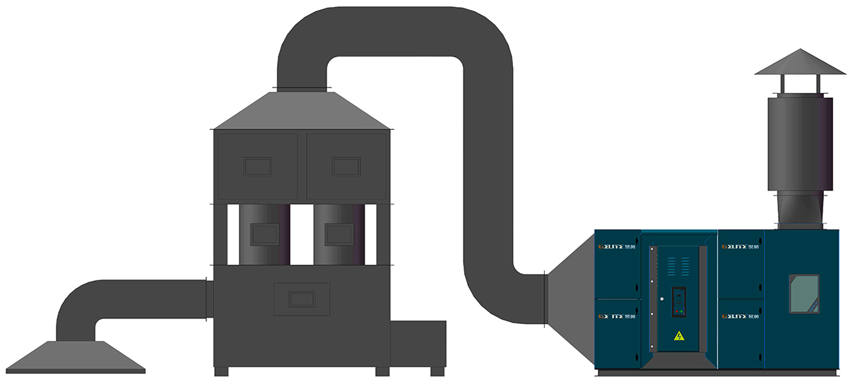 金属热处理是机械制造中的重要工艺之一,在热处理过程中,高温工件自身表层物质氧化气化,淬火油遇热气化蒸发,蒸发到空中后遇冷又快速冷凝,形成颗粒和油雾小液滴。热处理产生的油烟中含有炭黑、烟尘、苯并芘等复杂成分,未经处理,将严重危害工人身体健康,另外,油烟冷凝物长期附着在设备上,危害设备,造成拉弧短路等故障。