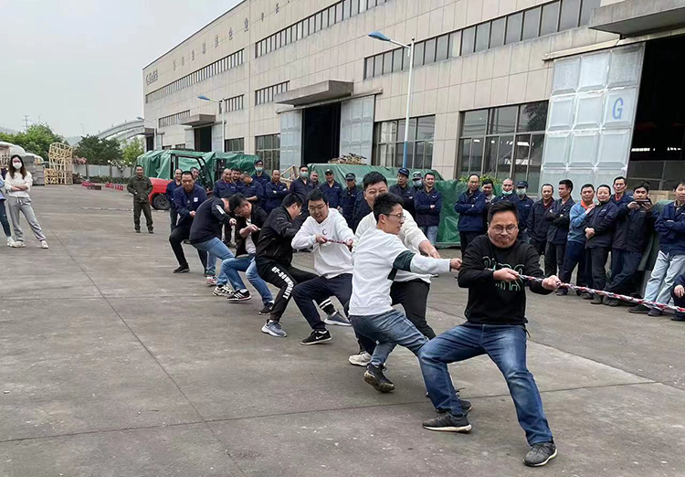 比赛以各部门为单位,每两个小组之间进行淘汰赛。当比赛开始的哨声响起,大家全都紧握绳子,憋足了劲把绳子往后拉。比赛过程中,各部门参赛队员努力拼搏,无论是场上还是场下,气氛都异常紧张,富有节奏感的“一二拉,一二拉”,还有加油声,充斥在操场上空。尤其是在胜负难分的时刻,大家毫不退却,咬紧牙关,坚持到底。