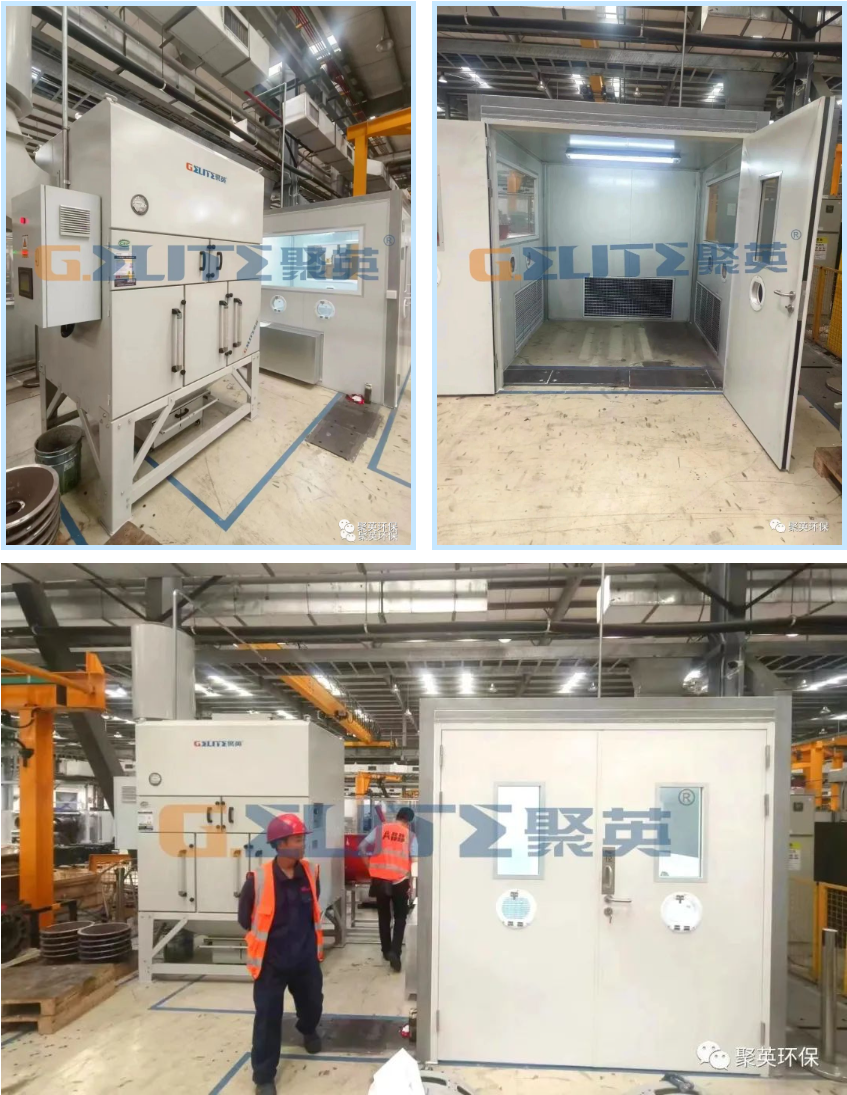根据业主的要求需创建智能化、绿色环保车间,对工件的自动化打磨工作房进行负压运行,同时打磨房内的粉尘经密闭抽吸收集后,通过管道进入高效粉尘净化装置,纳米级金属粉尘经除尘装置处理后排入管道烟囱。经处理后的粉尘颗粒污染物排放指标需满足环保要求,同时也达到职业卫生排放标准。