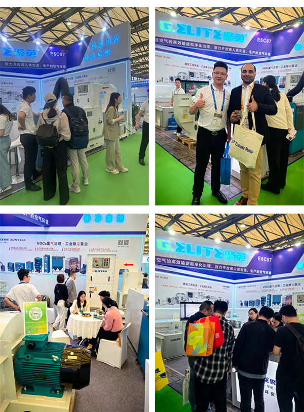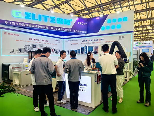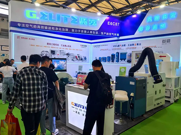 本次展会上,浙江聚英展示了过滤净化风机箱、离心风机、滤筒除尘器以及AI智能烟尘净化装置,吸引了大量环保行业从业者、技术专家以及采购商的关注,全方面给客户展示产品详细、具体的应用场景,让客户一目了然。