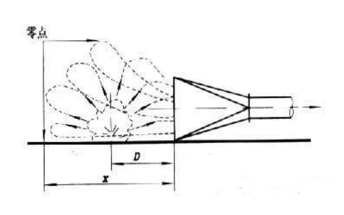 通:就是废气能畅通地被吸走。通常物料从高处落地时,会向四面散发,此时,废气的散发速度称为飞扬速度。物料落点处的废气飞扬速度最大。随着废气散发距离的增加,达到一定距离后,其散发速度为零。当废气散发速度较大时,不容易被捕集。而散发速度达到零时,废气被捕集就容易得多了。速度达到零点的那一点称为控制点,控制点到集气罩口的距离为x,废气源至集气罩口的距离为D,如下图所示。