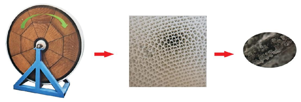 沸石转轮吸附装置是将高疏水性,耐高温分子筛负载在蜂窝状多孔纤维载体上制备而成的一种转轮吸附浓缩设备。