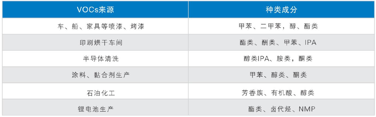 应用行业及废气成分: