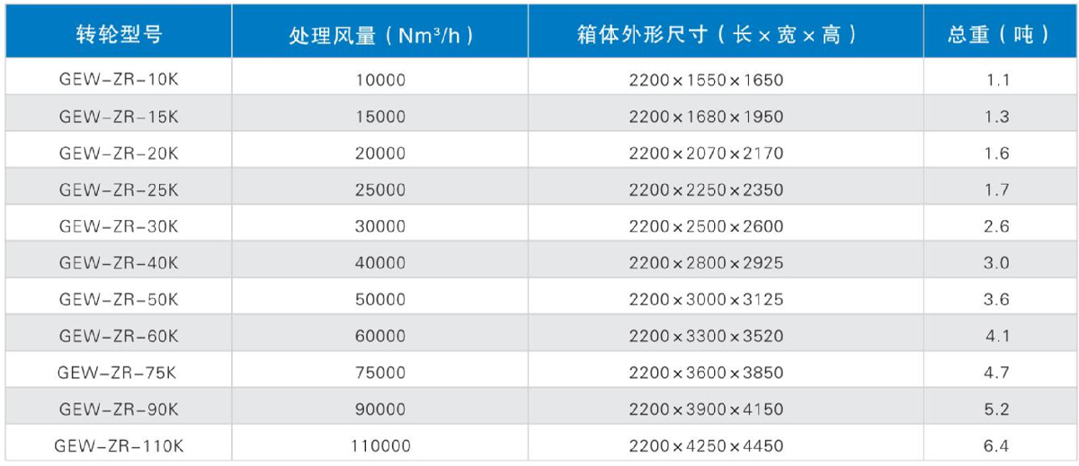 备注:在分子筛转轮上易发生聚合反应的烯烃类物质、有机硅氧烷、沸点超高260℃以上的大分子物质等,可能会对转轮造成永久性损坏。